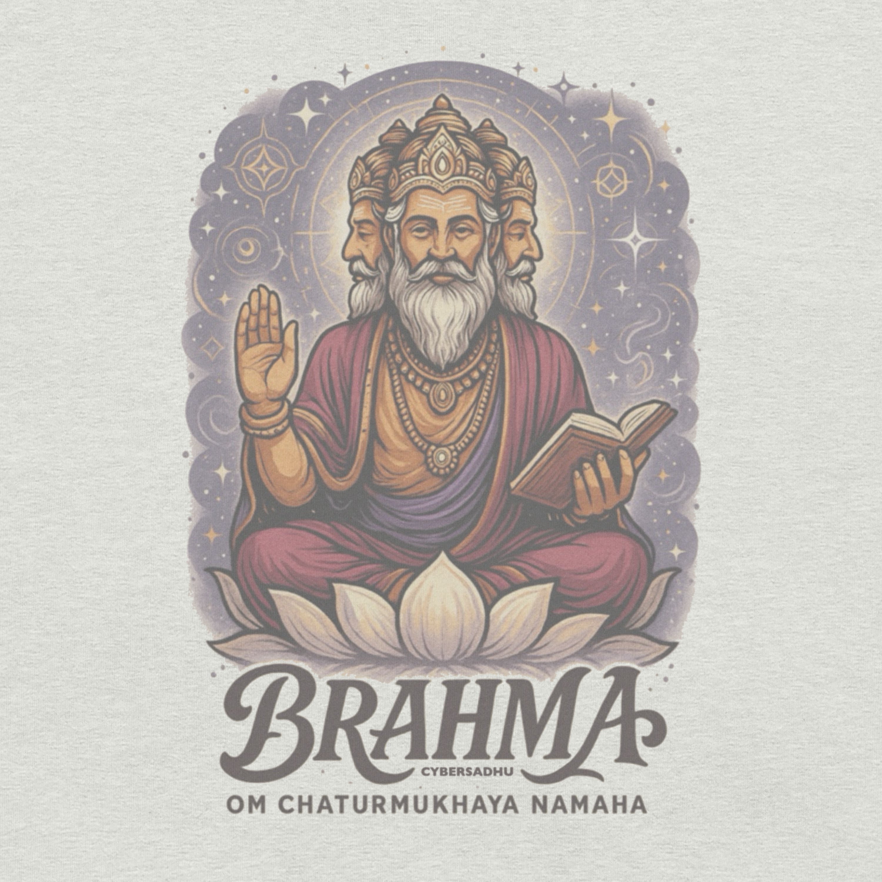 He is often shown with four faces, each looking in a different direction. This symbolizes the all-encompassing nature of his vision—his awareness of the entire universe and the four Vedas, which he is said to have created. The open book in his hand is a symbol of these sacred texts, the foundation of spiritual knowledge. The mantra Om Chaturmukhaya Namaha means “Salutations to the four-faced one,” honoring Brahma’s vast wisdom and creative power, even if he chooses to remain in the background of devotion.